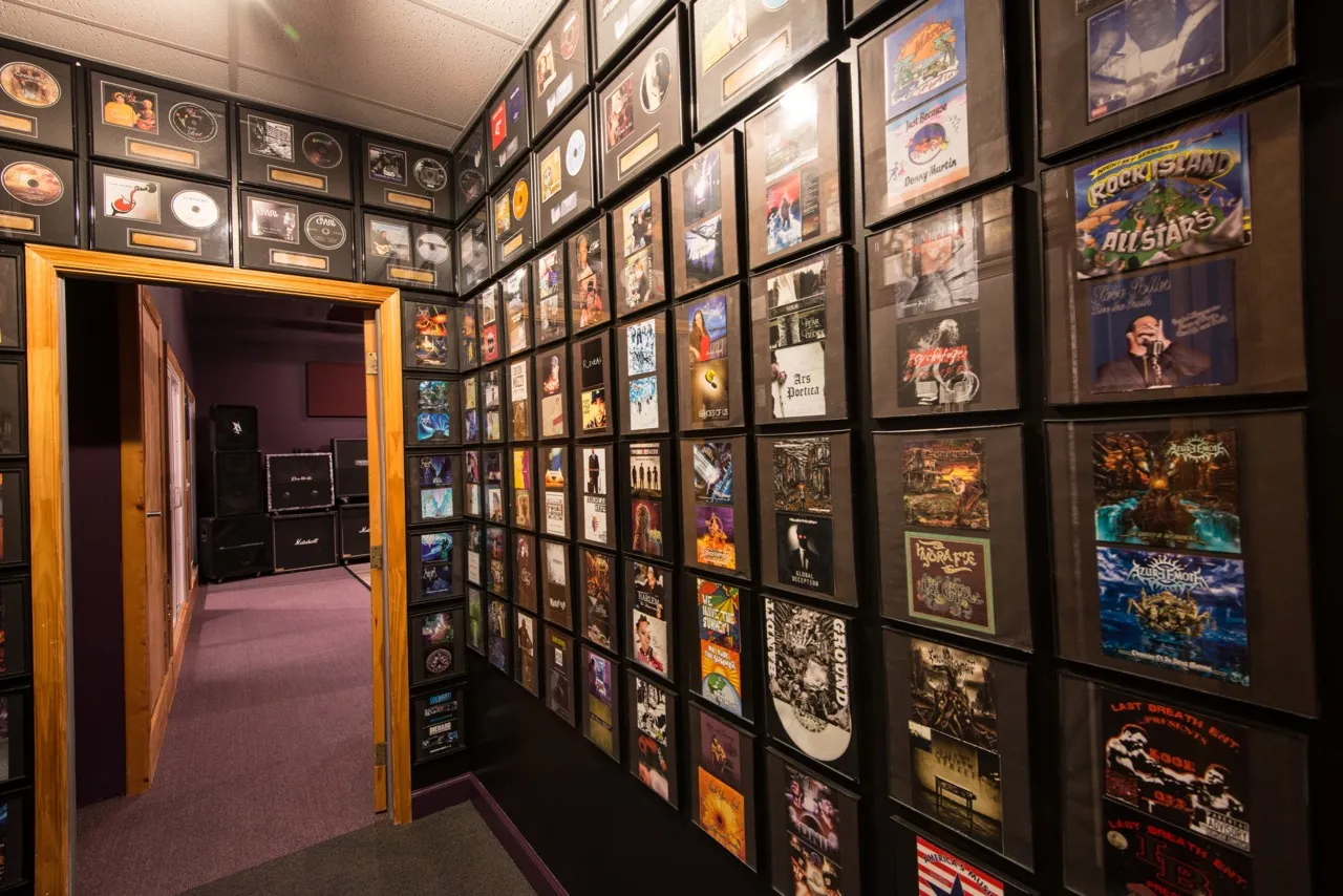 Our tracking room has 12 ft ceilings as well as two large iso-booths and one amp room. It is large enough to handle a full band with ease.